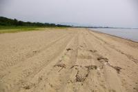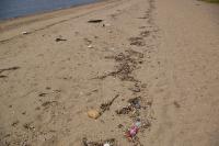 実は最初にした見に行った時は7月に入るかはいらないかという、海水浴シーズン直前で、もう既に「海の家」の準備が始まっており、有明浜は随分綺麗に清掃されていました。さすが香川県の海水浴場の「西の横綱」です。(ブルドーザーを使ってガサッと取るらしく、浜には沢山のキャタピラの跡がありました)