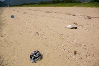 結構色々と流されてきていますね。手前のバッグなど、遠目から見たら「海水浴客が荷物をおいて泳ぎに行っているのか?」と思いました(笑)