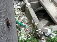 左隅に写っているリンゴ箱、丁寧にゴミが詰められて置かれていました・・・