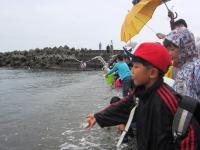 今日は清掃活動の後の放流体験の写真をアップしていきますよ〜