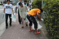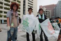 福岡を愛する男、パーソナリティのEIJIさん、そしてゲストアーティストのThe LOVEのメンバーも清掃活動に参加しました。The LOVEの皆さんはライブが始まるぎりぎりまで汗を流して清掃活動をがんばりました。