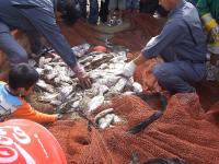 既に地元スタッフが前日から仕掛けていてくれた網に魚が入っていてくれれば