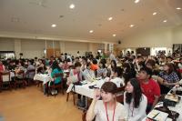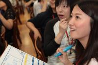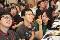 このクイズ大会は、大型スクリーンに映し出された問題と4択の答えを、15秒間で回答。答えと思うアルファベットをボードに記入。これを25問繰り返します。