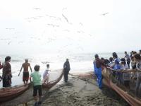 エンターテイメント:江ノ島西浜に移動して地引網漁体験