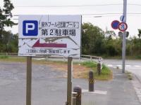 右に江ノ島水泳場、左に駐車場が見えてきます。