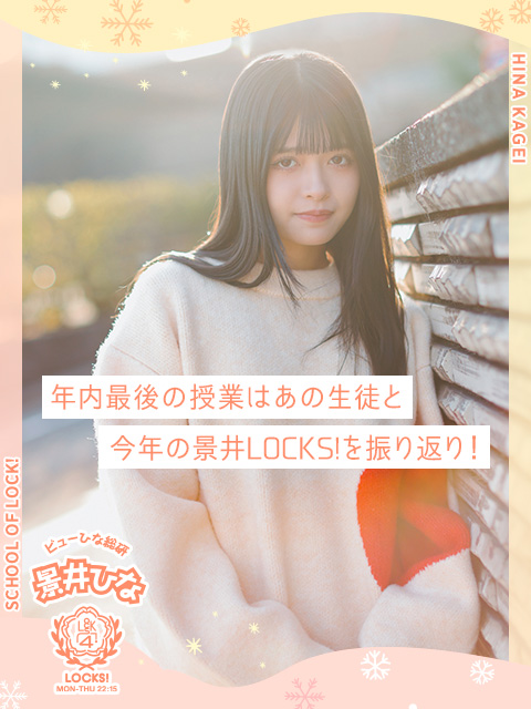 来年もしっかりトレンド調査をやっていくので、景井LOCKS!をよろしくお願いします!これは、みなさんに向けても言っていますからね。よろしくお願いします!引き続き景井LOCKS!掲示板では、募集しているトレンド調査のレポート、私へのメッセージや相談など受け付けています。詳しくはSCHOOL OF LOCK!のウェブサイト、SNSをチェックしてみてください!ということで、私とは、また来年!ビューひな総研、所長の景井ひなでした〜!こもり校長、COCO教頭!良いお年を〜」