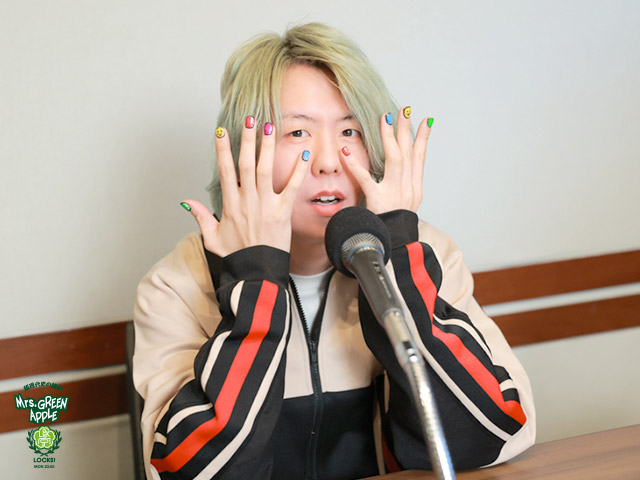 藤澤「“鮮やか”は“鮮(せん)”でもありますね!“新鮮”だったりとか!今年Mrs. GREEN APPLE10周年ですけれども!でもね、やっぱ“新鮮”なミセスを、“新鮮”な藤澤をお届けするよという気持ちも込めて!」