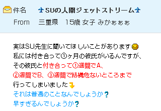 RYO-Z_無線です、もしもし! みかぁぁぁ_もしもし! RYO-Z_お、つながってます! SU_みかぁぁぁは、こんなかわいい声してんだぁ・・・ みかぁぁぁ_はいー(照) SU_今、高校1年生? みかぁぁぁ_1年です! SU_じゃあ、高校で出会ってすぐ付き合ったんだ。 みかぁぁぁ_はい! RYO-Z_彼は何年生? みかぁぁぁ_3年です! SU_みかぁぁぁは、部活入ったの? みかぁぁぁ_写真部に入ってます。 SU_先輩は? みかぁぁぁ_写真部です。 SU_そっか (笑) これ分かったぞ! みかぁぁぁ_はい!? ![]() SU_みかぁぁぁに、聞きます。 みかぁぁぁ_はい・・・ SU_1週間でA、どちらの場所で? みかぁぁぁ_先輩の・・・お家です。 SU_2週間でB、これはどちらの方で? みかぁぁぁ_・・・同じです。 SU_3週間で、結構危ない所・・・これも先輩のおうち? みかぁぁぁ_はい。 SU_コレね・・・4週間目になると、写真撮りだしますよ! みかぁぁぁ_・・・撮り出しました! RYO-Z_うわーーーーッ (笑) SU_撮ったの〜? (笑) みかぁぁぁ_あ、写真って言っても「寝顔」です! SU_・・・寝顔!? ・・・泊まったの? みかぁぁぁ_泊まってません。遊んでたら寝ちゃって・・・ SU_寝ちゃったんだ? ・・・誘ってるねぇ (笑) みかぁぁぁ_誘ってませーん (笑) SU_そうね、15才くらいって眠くなるもんね (笑) ![]() SU_今、情報が入りました。 『彼はファーストキスだった』 RYO-Z_みかぁぁぁ、ホント? みかぁぁぁ_はい、本当らしいです。 RYO-Z_機長、情報が入りました。 『昨日、胸を揉まれた』 SU_・・・管制塔!管制塔!! (笑) RYO-Z_CQCQ・・・!!!!! (笑) SU_昨日、胸を揉まれました!管制塔!! (笑) みかぁぁぁ_あはははは・・・(笑) ![]() RYO-Z_ういういの〜! SU_彼に胸揉まれて、楽しい? みかぁぁぁ_あ、えへっ・・・は、はい・・・ (照) RYO-Z_ぶわぁっはっはっ!! (笑) SU_Have a nice day〜〜! RYO-Z_じゃーねー! (笑) SU_安全にかぶるもんは、かぶせてね!! みかぁぁぁ_・・はいっ (笑) RYO-Z_安全な旅を!! 「写真、撮り出しますよ・・・」「はい撮られました!」SU先生、サスガの的中!っていうか、みかぁぁぁは、もう勝手にどうぞ!って感じなんですが、こういうテーマで大喜びするSU先生を見ていると、やっぱりエロスは永遠なんですかね。みかぁぁぁは、くれぐれも安全な旅をお願いします。 実は今回がラスト・フライトだったSU機長。これで現役を退きます。最後に、SU機長よりご挨拶があります。 ![]() 「みなさまのご搭乗、深く感謝致します。そして私は遠い彼方へ飛んでいこうと思います。空のほうで見かけたら手を振ってやってください。ありがとうございました」 Have a great "JOURNEY"... ![]() M-1. Journey / RIP SLYME M-2. ヒッチハイクガール / RIP SLYME ・・・・・・? ![]() |