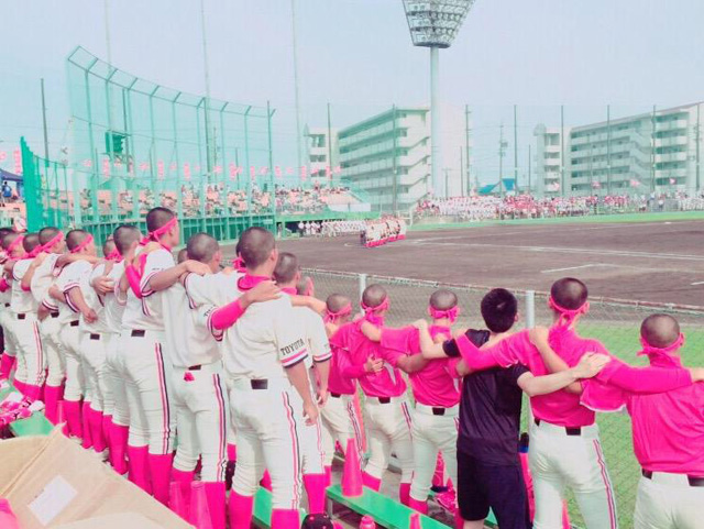 夏の大会初戦で勝って全員で肩を組んで校歌を歌っているときの写真です!