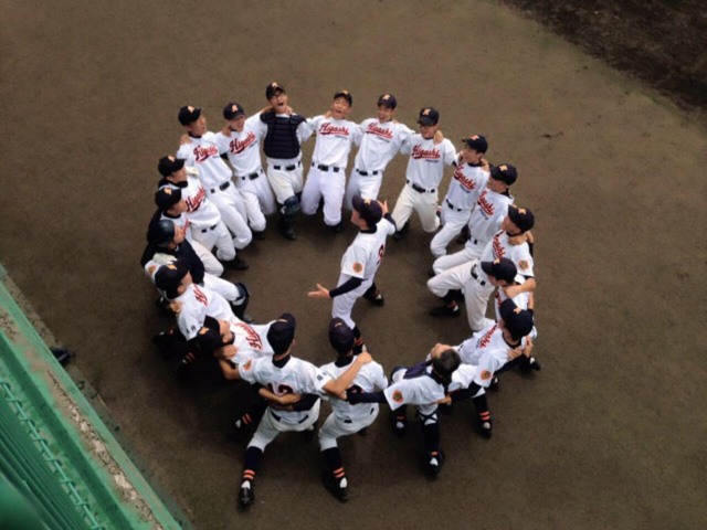 今年の夏の地方予選での試合前の円陣の時の写真です。1回戦で大敗してしまいましたが、今は既に新チームとして始動しています。来年の夏、先輩達の分も雪辱を晴らすために、1年かけて強くなりたいと思います。
