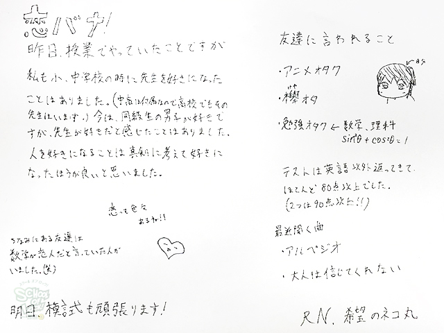 生徒のみんなは、キミが持っている息抜き術を報告してほしい!