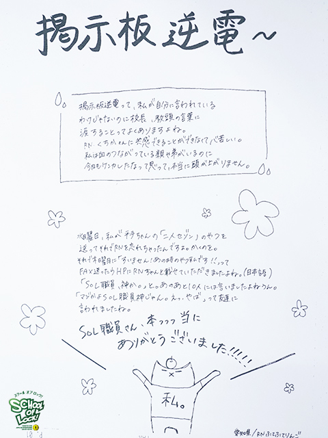 校長が黒板を書いている間に、もうひとつ書き込みを紹介するぞ!