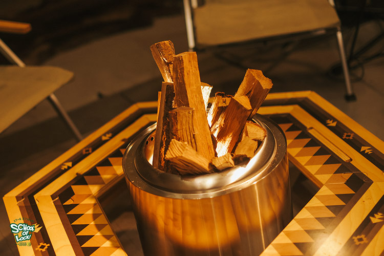 こもり校長「今、目の前に焚き火を焚いてるのよ。ローテーブルの真ん中に焚き火。もう知ってる生徒は知ってるお馴染みのセットですよ」