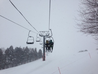 リフトに乗るとーやま校長とカヲル先生。