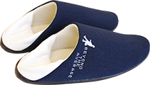 紺のフロント部分に安部君のシルエットを刺繍でちょこっと入れました。かかとを作ってルームシューズ風にも使用可能。裏側は柔らかい皮で作られているので、動きやすいです。