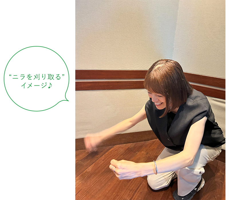 ニラは1年の間に同じ株から収穫を続けるので、きれいに刈ることができないと、次の生育に影響を及ぼしてしまいます」