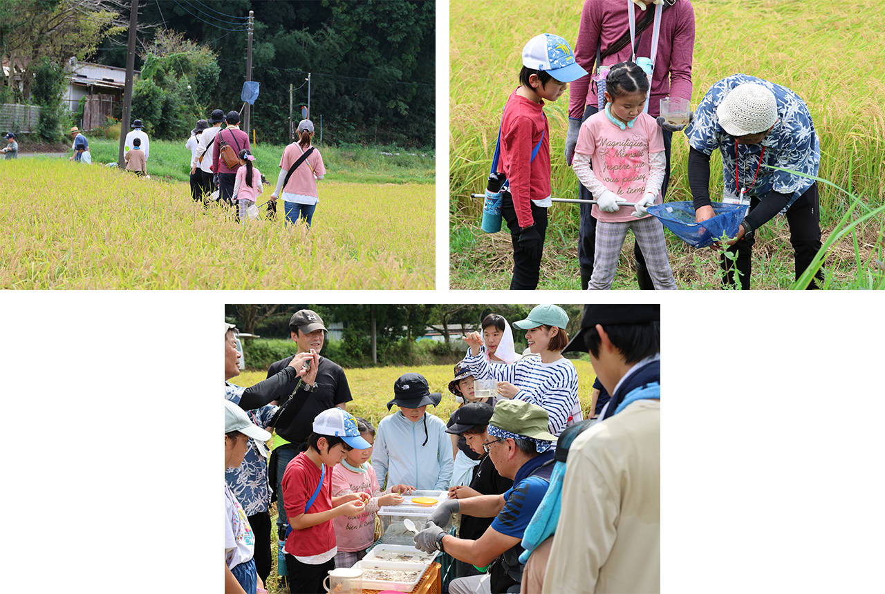 稲刈りの後は、「田んぼの生きもの調査」を開催!