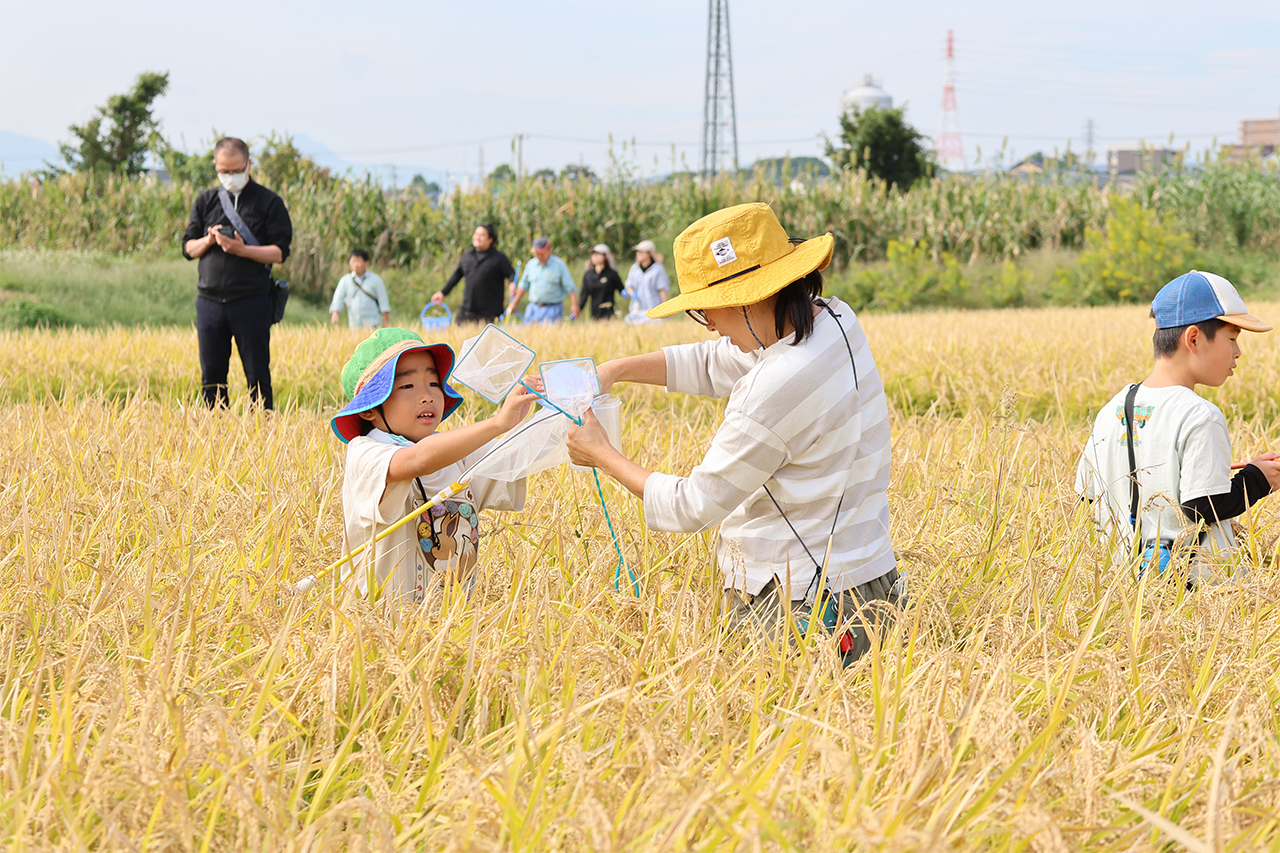 「秋の稲刈りシーズンにも行い、このときは赤トンボやバッタを捕まえます」
