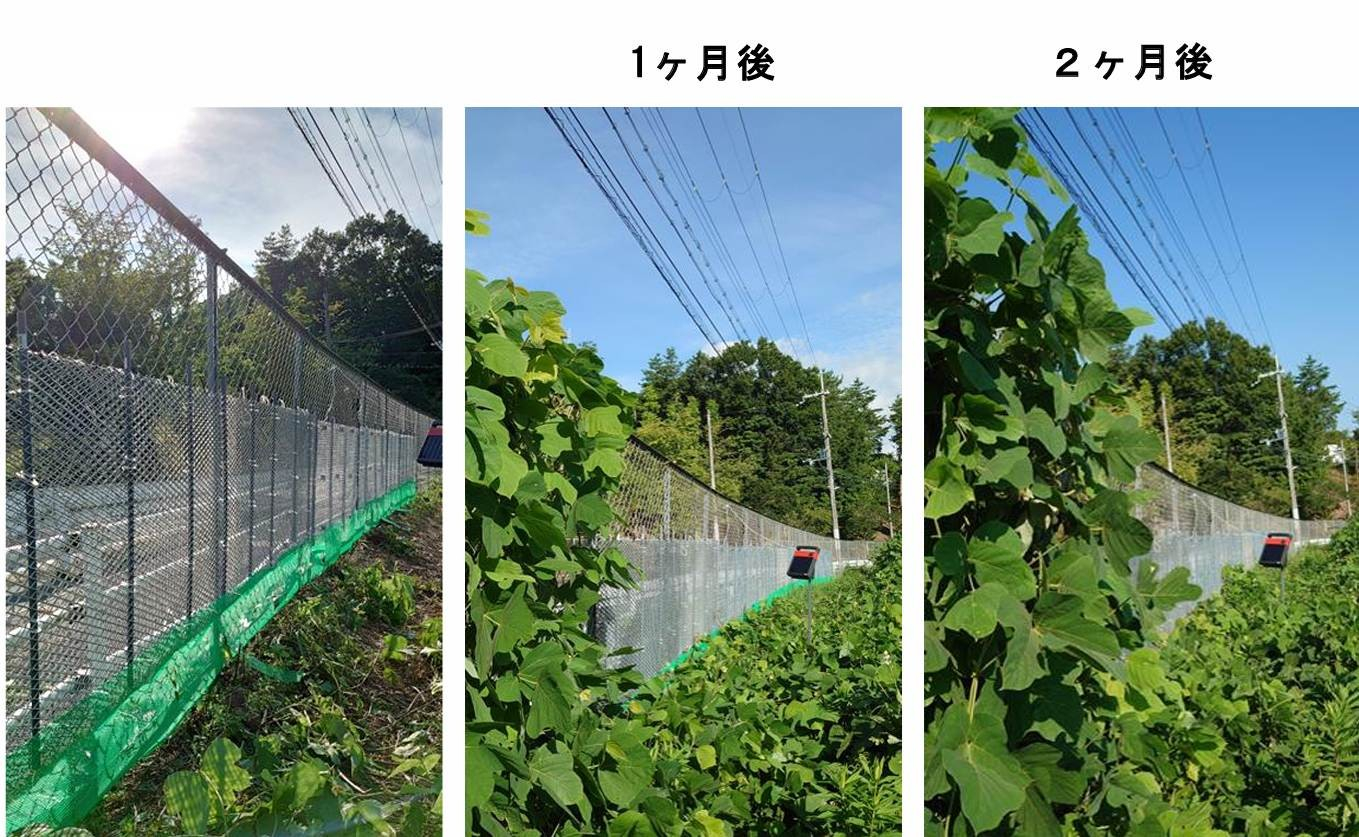 「一方、フェンスに設置していないところはクズに覆われました」