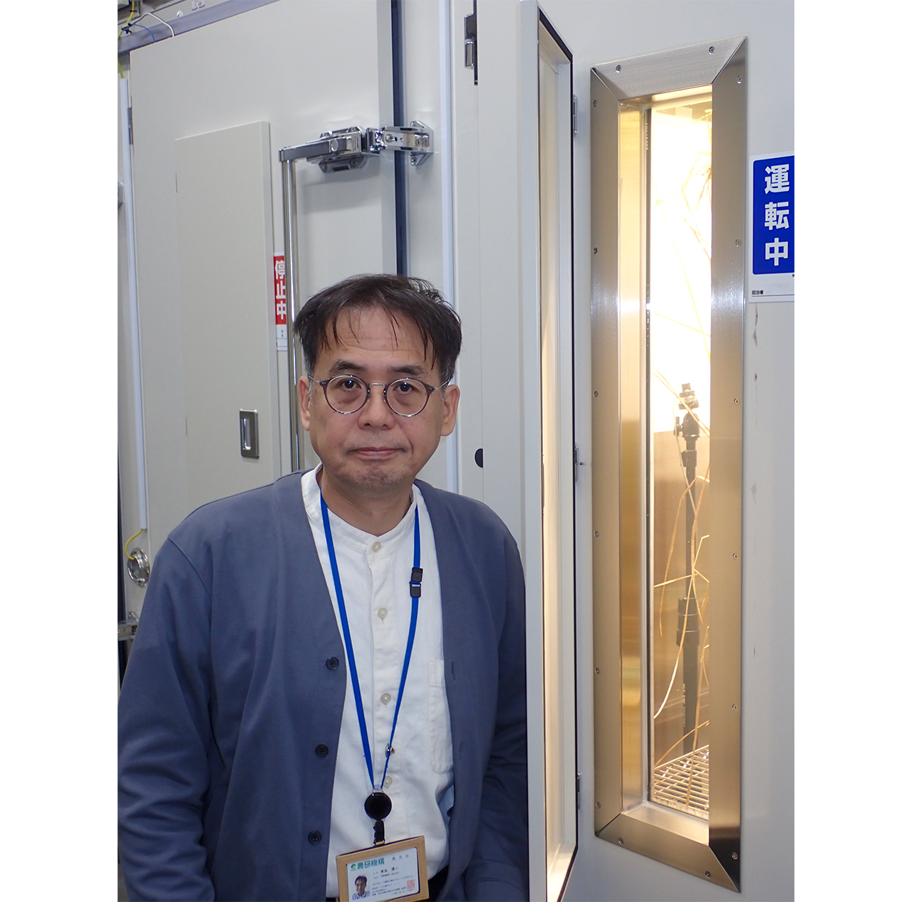 様々な環境条件を再現できる「人工気象室」を使った研究。