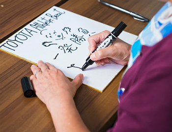大事にしている言葉は「やる気、根気、元気、瑞生」。この言葉はお母さんからもらった言葉で、高校時代にお母さんが瑞生さんのハチマキに書いてくれた言葉なんです。