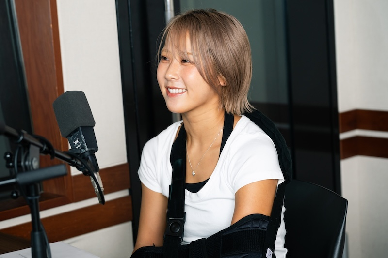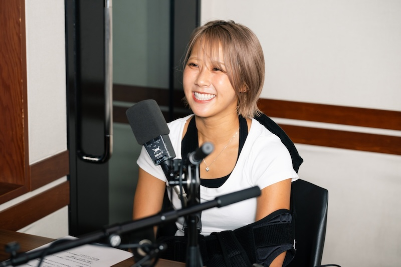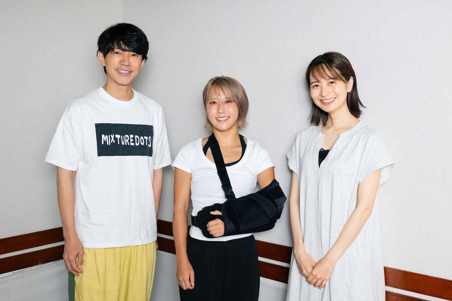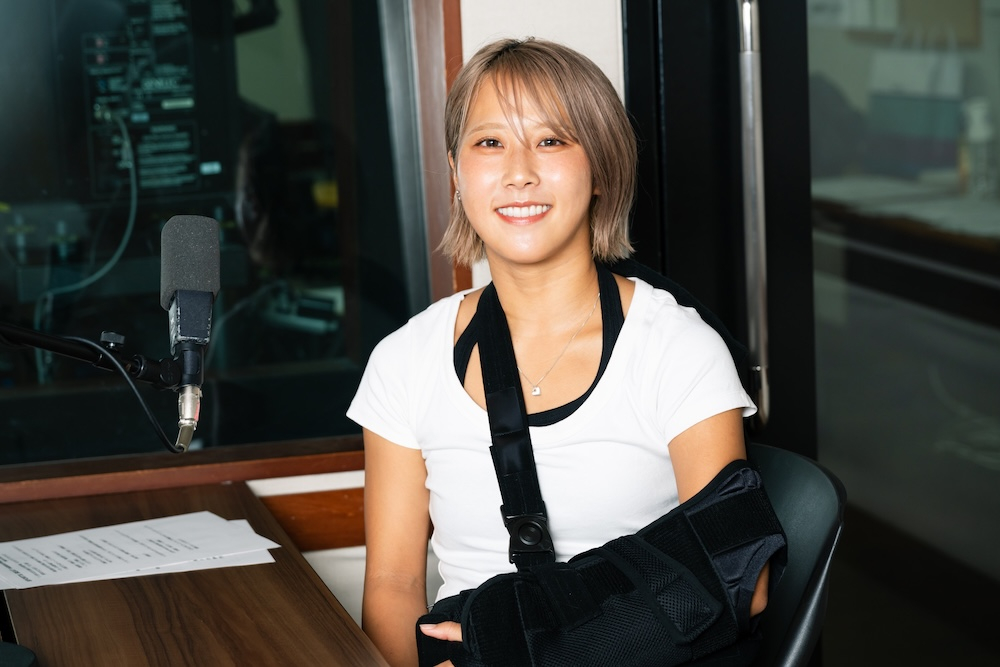 ──今日スタジオに来てくださいましたけれども、ちょっと左腕を固定されていますね。