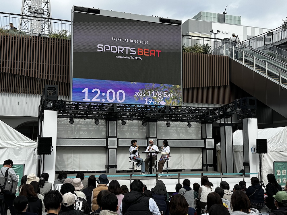 「SPORTS BEAT」では、11月4日(土)に、eスポーツチーム ZETA DIVISION 所属のストリーマー・鈴木ノリアキさんをゲストにお迎えし、名古屋市・Hisaya-odori Park メディアヒロバ内ステージで開催されたラリージャパン応援フェスにて公開収録を行いました。
