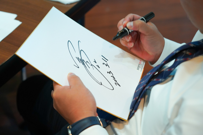 今回お話を伺った里崎智也さんのサイン入り色紙を、抽選で1名の方にプレゼントします。