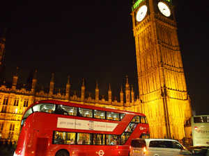| ドクターマーチンで、ブーツとカバンを探すジョージ。 | 定番だけど、ビッグベンの夜景。 |