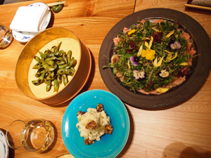 | 一階は、炎をイメージした内装になっています。昨年11月にオープンしたばかりです。 | 前菜も美味しかった。こんなに本格的な和食がロンドンで食べれるなんて幸せ! |