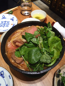 | こちらがメイン料理のすき焼き。 お店でも一番人気なんだとか。 |
