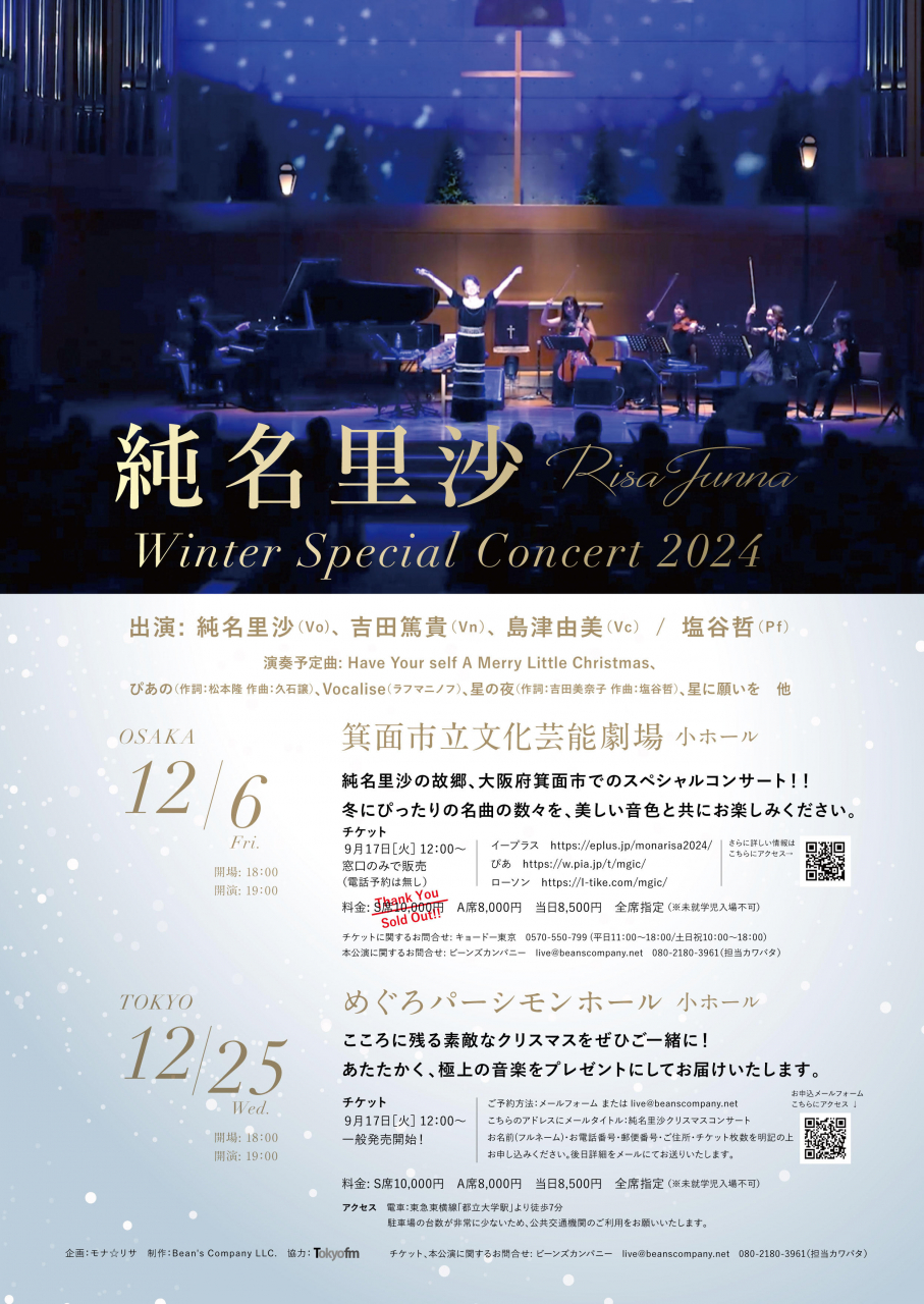 今日は、純名里沙さんのクリスマス・コンサートをご紹介をしました🎄