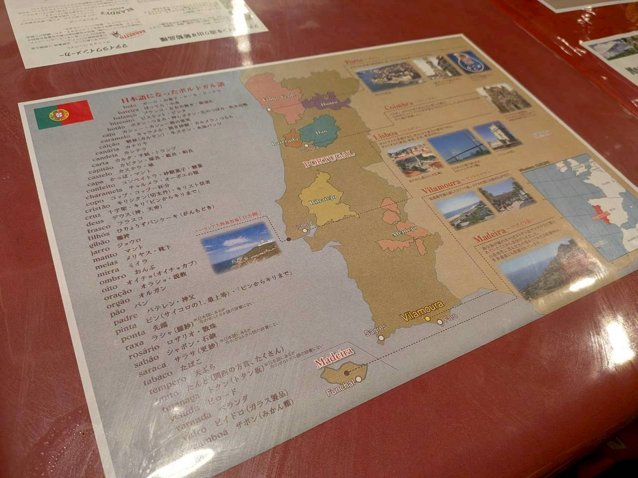 テーブルクロスの下には、「日本語になったポルトガル語」一覧が。