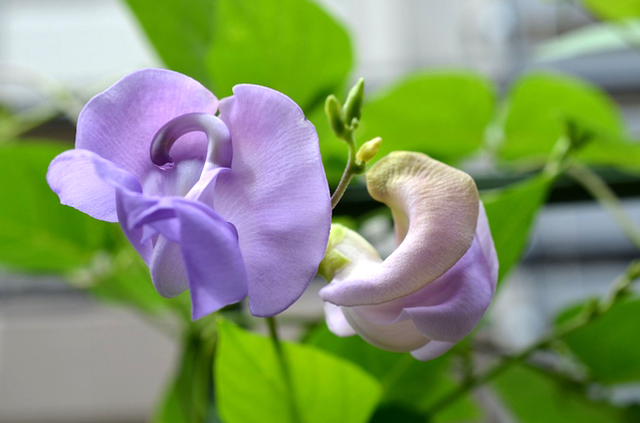 葉がとてもよく茂り、うす紫色の小さな花を楽しむことができます。別名「真夏の青いスイートピー」とも言われていますので、夏の窓辺を愛らしくしてくれます。