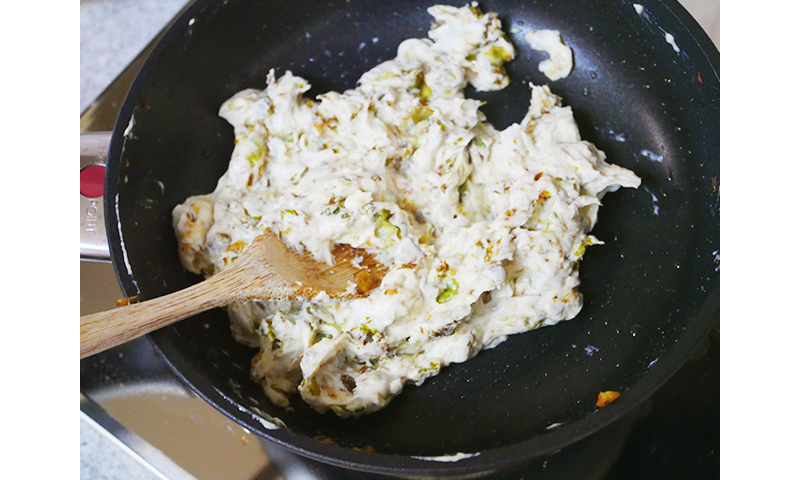 3. 2にかぼちゃを加えてざっくり混ぜる。(かぼちゃを加えたらまぜすぎないように注意しましょう)
