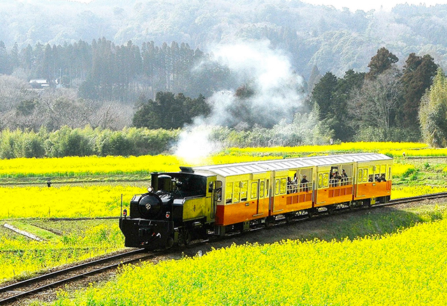 通天橋を渡り山を抜けると今度は景色が一変。稲田が広がり、江戸時代の農村の秋の田園を思わせるのどかな景色を体験できます。