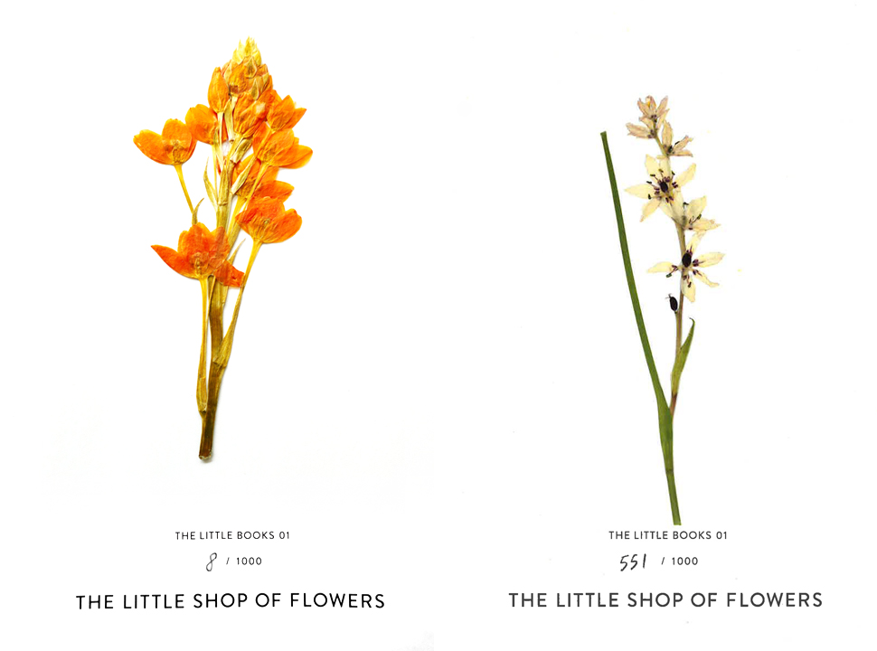 壱岐さんがこれまでに出会った花とお店の日々を写真に収めて、自主制作したフォトブックが『THE LITTLE SHOP OF FLOWERS』。思い出がたくさんつまったこの本にも、中をひらくと小さな押し花がひとつ登場します。ひとつひとつ手作業で作り、貼ったというその押し花も、花とともに出会った人、一人一人のお客さまへの感謝の気持ちを表したものとなっています。