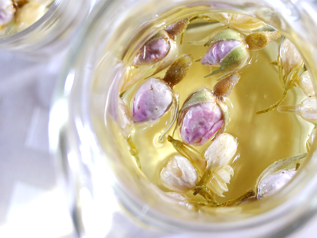 紅花は、女性の大敵“冷え”を追い出し、温める効果に優れているとされています。また、ジャスミンはその独特な香りにリラックス効果があり、バラはその香りにイライラを解消したり、落ち込んだ気分を遠ざけたりするパワーがあるそうです。