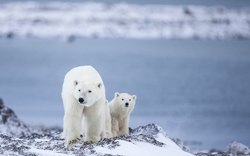 マニトバ州の北部、ハドソン湾に面した小さな町。毎年10月下旬になるとチャーチル近辺のハドソン湾が一番早く凍り始め、 ホッキョクグマがチャーチルに集まってくることから、「ホッキョクグマの首都」と呼ばれています。チャーチルでは、自然環境を保護しながらホッキョクグマ観賞できる設備が整っており、毎年多くの観光客が訪れます。自然の中で生息するホッキョクグマと安全に間近で出会える感動を味わえます。