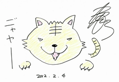 秦さんはTVで見てたので、てっきりお会いしているかと思ったら、初めましてでした(笑)。「癒されるよ、癒されるよ」と先週から皆さんに聞いていたので、どれくらい凄いんだろう!?と楽しみにしてましたが、本当でした!肌が潤いました~。なんか良い空気を発しますね。凄く曲とともに癒されました。トラノコのイラストを描いてくださったのが、凄い上手で可愛らしくて、PVと同じ?!と、秦さんがPVを書いているのかと思っちゃいました(PVは違うんですが)。