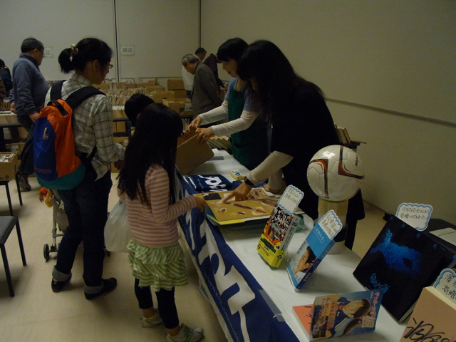 今回はリサイクルブック市へのスタッフサポートと、その一角で子ども未来図書の展示を行いました。