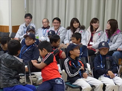 午前中は土岐小学校のグランドで野球の練習をしていたユニフォーム姿の男の子達がとにかく元気! 女の子もグループで防災センターに集まりました。