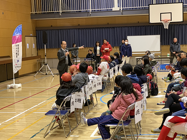 指導者の皆様と元気いっぱいの児童の皆さんの挨拶から午後の講義が始まりました。