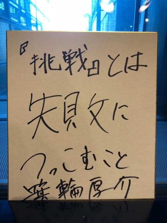 番組では、そんな箕輪さんの挑戦に関するメッセージを色紙に書いて頂きました!こちらを1名様にプレゼントします。このホームページのメッセージフォームから「箕輪厚介さんの色紙希望」と書いてご応募ください!