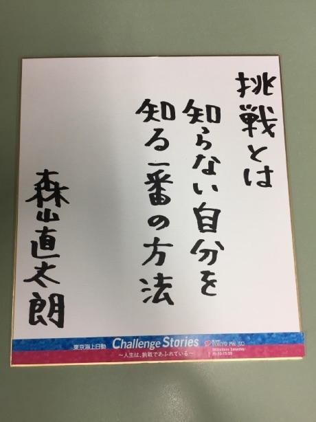 番組ではそんな森山直太朗さんの挑戦に関するメッセージを色紙に書いて頂きました!こちらの色紙を1名様にプレゼントします。このホームページ右のメッセージフォームから「森山直太朗さんの色紙希望」と書いてご応募ください!