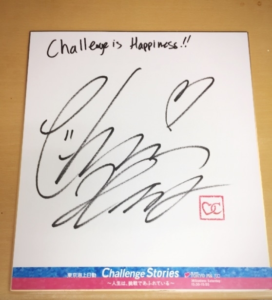 番組ではそんなクリス・ハートさんの挑戦に関するメッセージを色紙に書いて頂きました!こちらの色紙を1名様にプレゼントします。このホームページ右のメッセージフォームから「クリス・ハートさんの色紙希望」と書いてご応募ください!