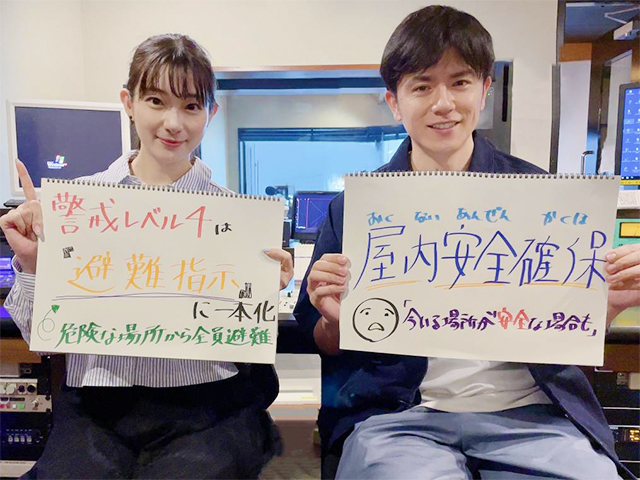 「警戒レベル4は『避難指示』に一本化 ←危険な場所から全員避難」「屋内安全確保 今いる場所が安全な場合も」