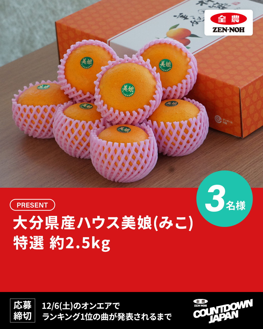 今回は、大分県産ハウス美娘(みこ)特選 約2.5kgを3名様にお届けします!