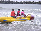 恒例の企画として用意したマリンスポーツの体験コーナーですが、天気はいいものの残念ながら波が非常に高く、一部中止&中学生以上という年齢制限が付いてしまいました。