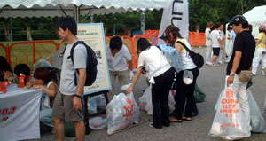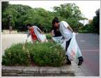 参加者は公園一帯を清掃。植え込みなどに缶、瓶、ペットボトルや弁当などのプラスチック容器が目立ち、可燃物は、タバコの吸殻、新聞、雑誌が多かった。 |
